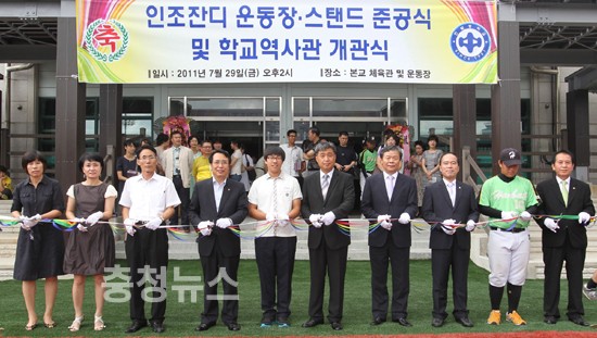 대전 동구(구청장 한현택) 지난 29일 한밭중학교 인조잔디 운동장 조성공사 준공식을 가졌다.