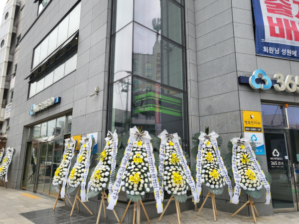 [충청뉴스 김윤아 기자] 대전유성새마을금고에서 13일 한때 ‘조화 소동’이 벌어졌다. 금고 고위인사인 A씨와 부녀회원간 부적절한 행동이 발단이 됐다.