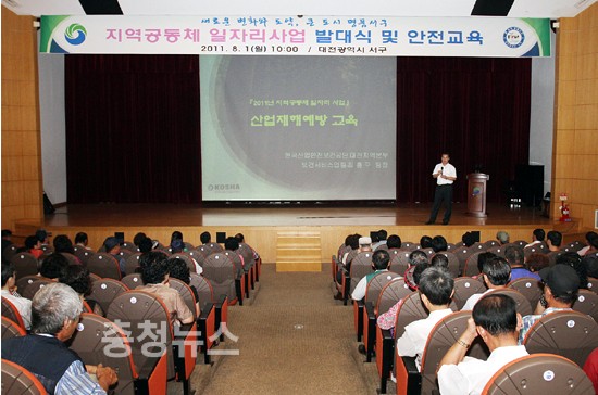 대전 서구(구청장 박환용)는 1일 구청 대강당에서 근로자와 사업관계자 등 200여명이 참석한 가운데 지역공동체 일자리사업의 발대식을 갖고 본격 추진에 들어갔다.
