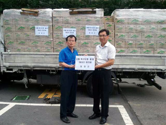 또한 진 서초구청장은 “청양군민들이 우리와 아픔을 같이 나누는 마음이 정말로 고맙고, 수해복구 현장에서 절대적으로 필요한 생수를 제공해 준 것에 대해 진심으로 감사하다”고 말했다.