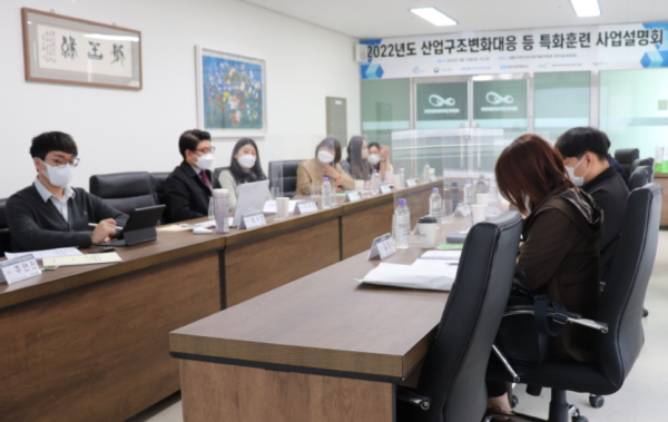 세종지역인적자원개발위원회는 15일 오전 10시 소담동 소재 4층 회의실에서 세종지역 훈련기관 실무담당자 17인이 참석한 가운데, ‘22년도 산업구조변화대응 등 특화훈련 사업설명회’를 개최했다.