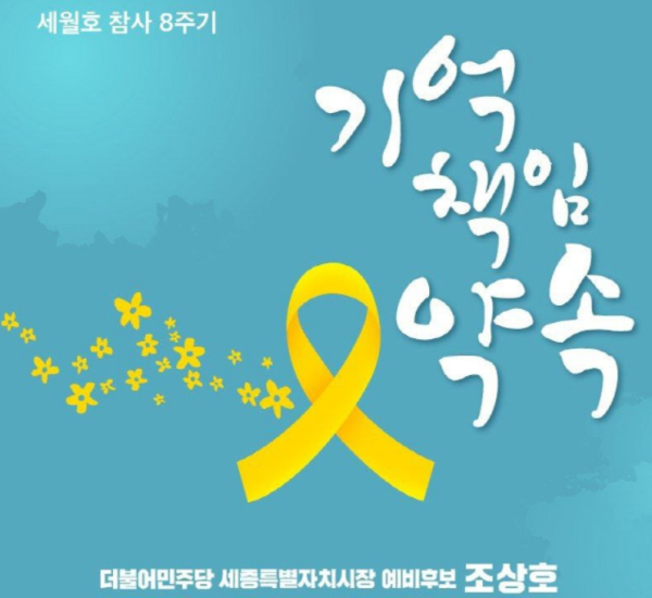 [충청뉴스 최형순 기자] 조상호 세종시장 예비후보는 세월호 참사 8주기에 즈음한 입장을 내고 “매월 봄이 오면 마음이 아프다”라며 “세월호 유가족들의 심경은 그 무엇으로도 위로가 될 수 없을 것이다”라고 전했다.