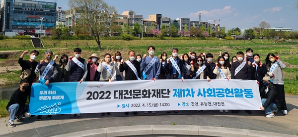 [충청뉴스 이성현 기자] 대전문화재단 노사가 갑천을 찾아 환경정화활동 및 워크숍을 진행했다고 18일 밝혔다.