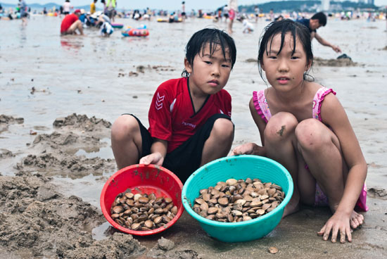 본격적인 휴가철을 맞아 대천해수욕장으로 해수욕을 하기 위해 찾아온 관광객들은 뜻하기 않게 갑자기 밀려온 조개잡이 체험에 빠져 무더위를 잊고 있으며, 관광객마다 많게는 10여kg씩 조개를 잡아가고 있다.