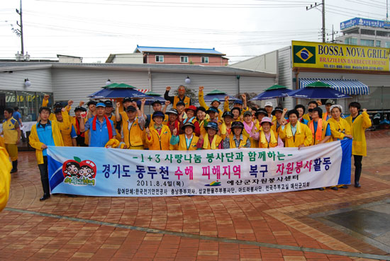 예산군(군수 최승우)은 지난 4일 군자원봉사센터(센터장 박상진), 충청남도자원봉사센터(센터장 안승화) 등 자원봉사단체 연합회 45명과 함께 지난 30일 폭우로 큰 피해를 입은 경기도 동두천시에서 복구활동을 펼쳤다고 밝혔다.