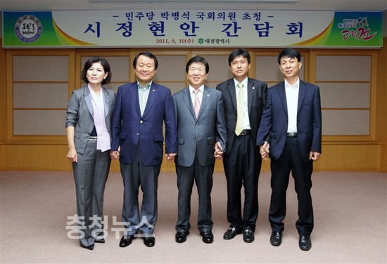 이날 간담회에는 염 시장, 박 의원을 비롯해 민주당 소속 김인식·김종천·김명경 대전시의회 의원과 박상덕 행정부시장, 실국장 등이 참석했다.