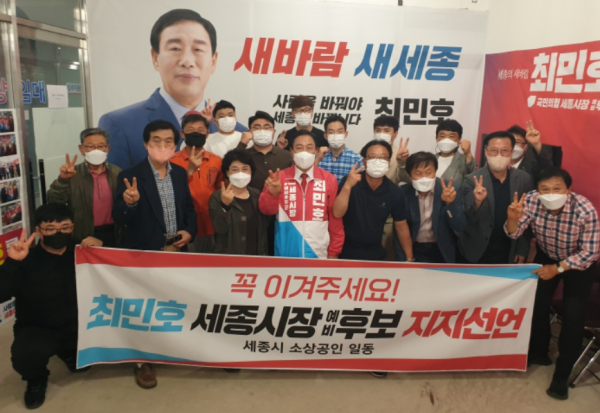 [충청뉴스 최형순 기자] 세종시 소상공인 100여 명이 최민호 국민의힘 세종시장 예비후보를 지지선언을 하는 등 뜻을 같이하기로 했다.