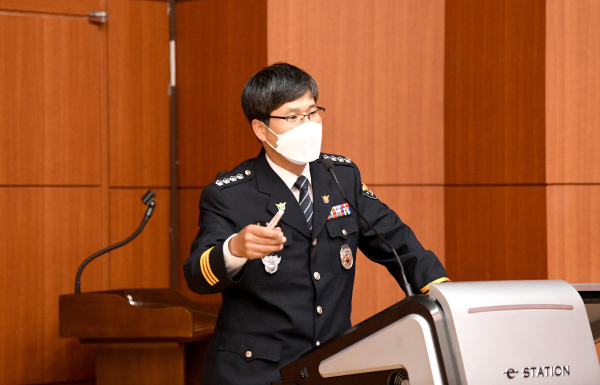 ‘천안의 치안현황과 주요 시책’을 주제로 진행한 조재광 서장은 천안시의 역사와 범죄율을 비롯해 현장에서의 이야기를 자세하게 풀어내 학생들의 이목을 끌었다.