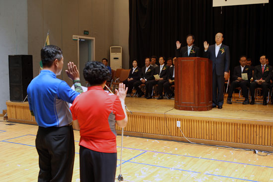 ▲ 새마을지도자 남녀대표가 결의문을 낭독하고 있다.