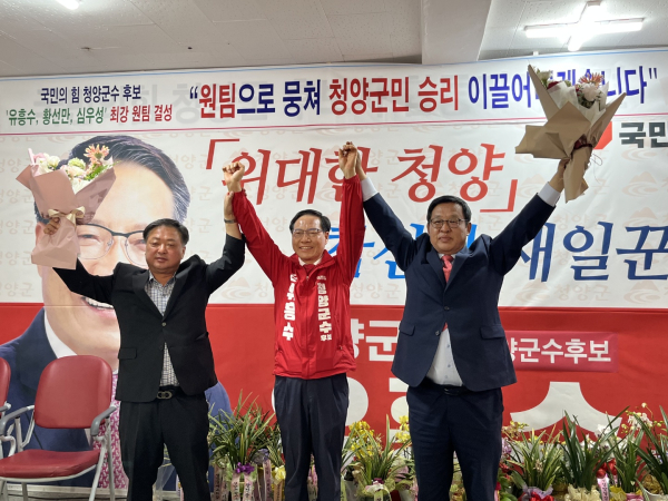 심 전 의장은 "우리 국민의힘의 유흥수 후보가 다시 청양군민의 선택을 받아, 청양 대전환과 함께 청양의 새로운 미래를 위한 기틀을 마련할 수 있도록 최선을 다해 지원하겠다"라고 강조했다.