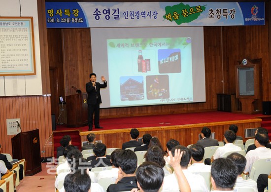 ▲ 도청 직원을 대상으로 특강을 하고 있는 송영길 시장