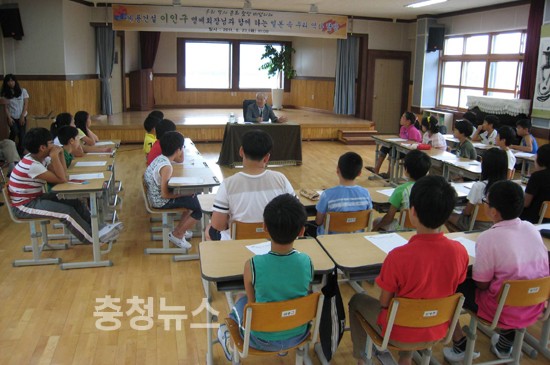 이인구 계룡장학재단 이사장(계룡건설 명예회장, 13․15대 국회의원)은 23일 대전 동구 추동 동명초등학교를 방문해 학생들에게 ‘미래를 향한 꿈과 희망을 다지자’는 주제로특강을 실시했다.