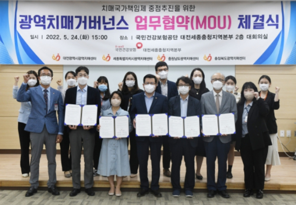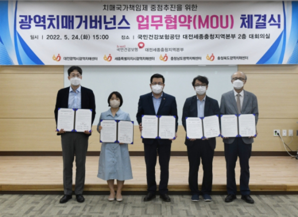 [충청뉴스 최형순 기자] 국민건강보험공단 대전세종충청지역본부(본부장 최옥용)는 24일(화) 지역본부 관내 대전·세종·충남·충북광역치매센터와 치매국가책임제 중점추진을 위한 광역치매거버넌스 업무협약(MOU)을 체결했다.
