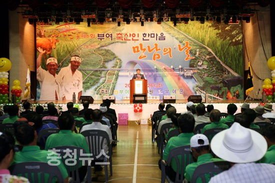 부여군(군수 이용우)은 26일 청소년수련원 실내경기장에서 연초 구제역 및 AI 여파를 슬기롭게 이겨낸 군내 축산농가들의 화합과 친목을 다지고 지역 축산물의 우수성과 안전성을 널리 알리기 위한 ‘제6회 부여 축산인 한마음 만남의 날’을 개최했다.
