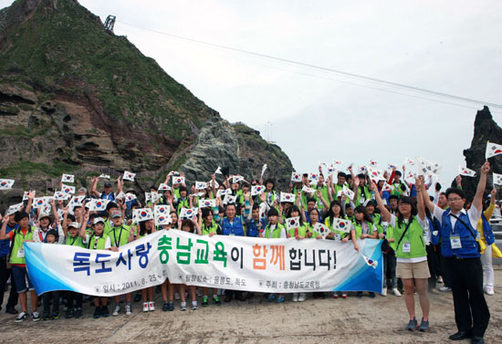 충남교육청(교육감 김종성) '독도수호 나라사랑 탐방대'는 일본의 독도 침탈 야욕에 대응하고 우리땅 독도를 수호하는 국토사랑 정신을 가다듬기 위해 지난 26일 독도에서 '독도수호 결의대회'를 가졌다.