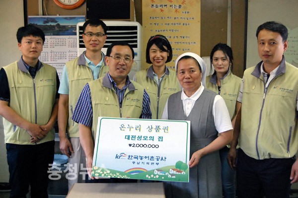 한국농어촌공사 충남지역본부(본부장 김태웅)는 1일 대전 동구 삼성동 소재 성모의 집을 방문해 불우한 이웃을 위한 '사랑의 점심 나누기' 무료급식 봉사활동을 펼쳤다.