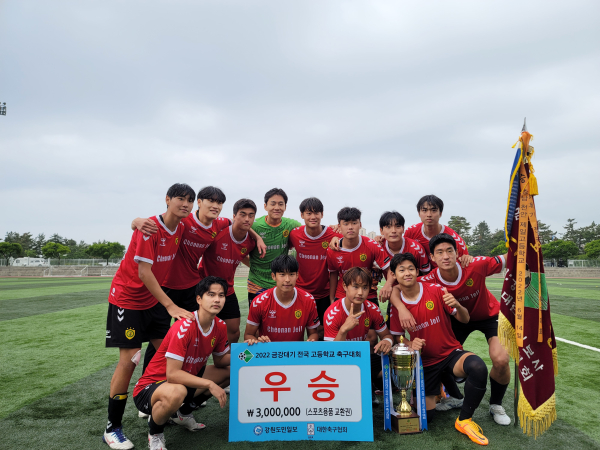 [충청뉴스 박동혁 기자] 천안제일고등학교가 지난 14일 강원도 강릉에서 열린 ‘2022 금강대기 전국고등학교 축구대회’ 결승에서 동북고등학교를 3대1로 누르며 우승했다.