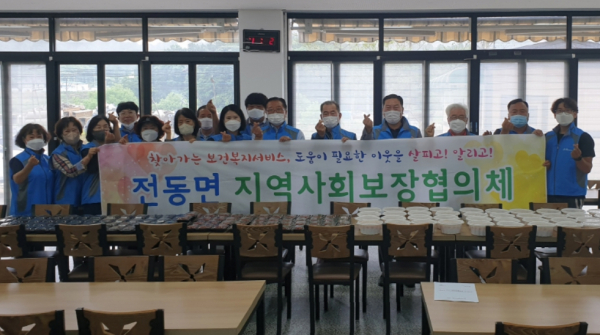 전동면지역사회보장협의체는 지난해 9월부터 반찬 나눔 봉사를 시작해 매월 직접 조리한 반찬을 형편이 어렵고 거동이 불편한 이웃들에게 전달하고 있다.