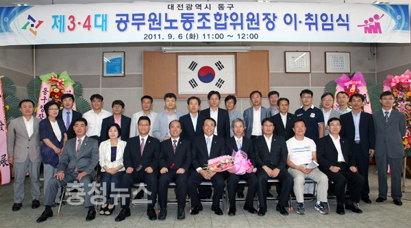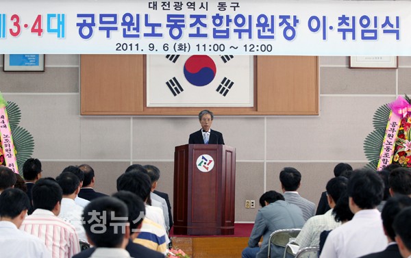 대전 동구 공무원노동조합(조합장 장윤상)은 6일 구청 대회의실에서 동구 공무원노동조합 제3, 4대 위원장 이·취임식을 가졌다.