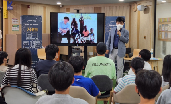 [충청뉴스 최형순 기자] 세종특별자치시 고운청소년센터(센터장 강경구)가 9일 고운동남측복합커뮤니티센터 별관 2층에서 구수환 이태석재단 이사장을 초청해 ‘도움을 넘어 공존으로’라는 주제로 토크콘서트를 진행했다.