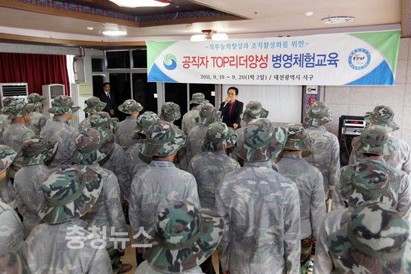 대전 서구(구청장 박환용)는 간부공무원들의 도전정신과 진취적 마인드를 배양하고 공직분위기 일신을 위해 ‘공직자 TOP리더 양성 병영체험 교육’을 가졌다.