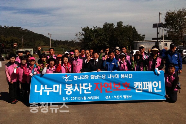 한나라당 충남도당 나누미봉사단(단장 장형근)은 지난 20일 서산시 팔봉산에서 산악회 회원들과 함께 자연보호 환경캠페인을 진행했다.