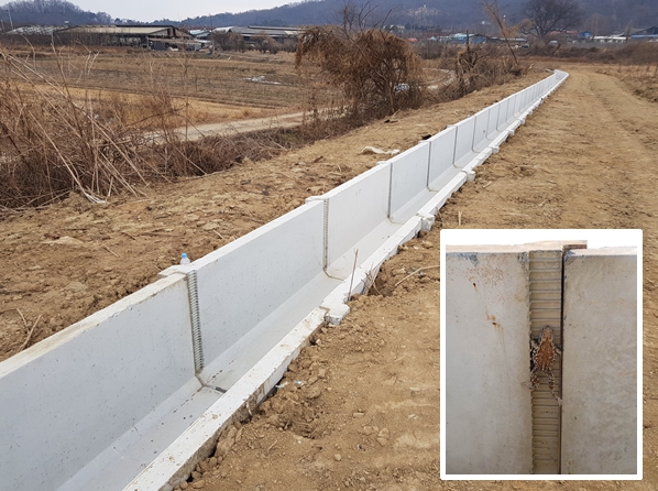 공사는 ESG 경영의 환경(E)ECO전략의 일환으로 전국 농경지에 신 경망처럼 뻗어 있는 콘크리트 농수로와 취수보에 소형 야생동물의 생활사를 연결해주는 이동로 설치를 병행 추진하고 있다.