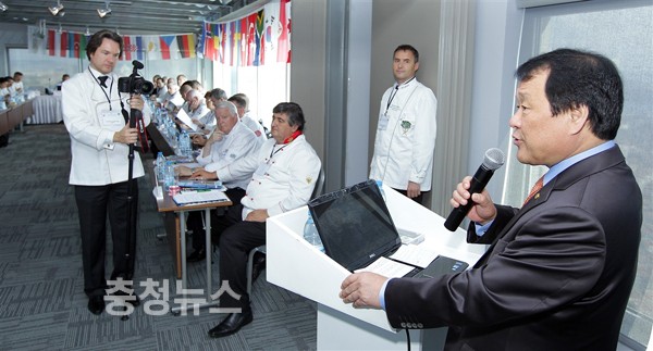 이날 염 시장은 기조연설을 통해 “내년 대전에서 열리는 제35회 WACS 대회의 성공적 개최는 무엇보다 유럽 회장단의 각국 대표단이 대전을 많이 찾아주는 것이 매우 중요하다”며 “특히 대통령 부인 김윤옥 여사가 대전세계조리사대회 명예위원장직을 맡는 등 정부에서도 국가적 규모의 행사로 인정해 준비에 철저를 기하고 있다”고 강조했다.