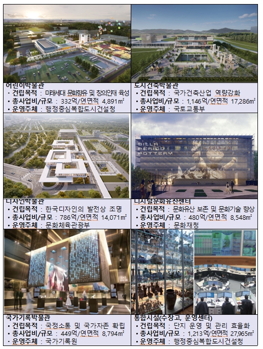 * 국민들의 문화수요 부응, 도시인프라 구축 및 문화균형발전을 위해 행복도시 내 5개 개별 박물관을 집적한 국내 최초 박물관단지 건립사업
