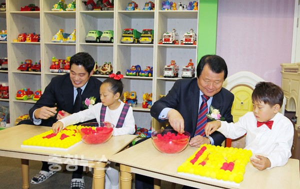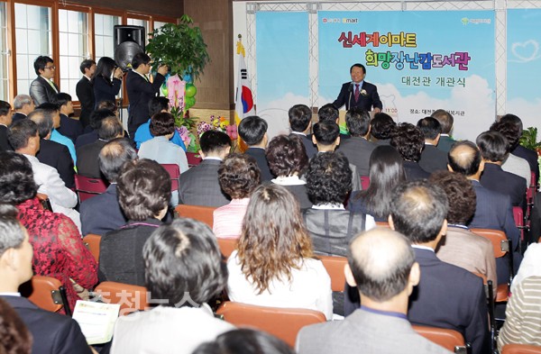 염홍철 대전시장과 어린이재단 이제훈 회장, 신세계그룹 정용진 부회장이 참석한 가운데 27일 비래동에 위치한 대전종합사회복지관에서 신세계이마트희망장난감도서관 대전관 개관식을 가졌다.