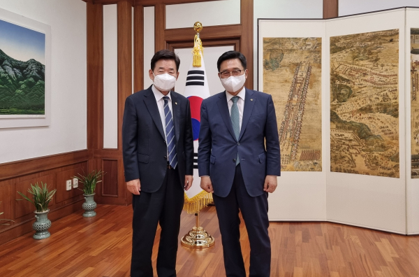 [충청뉴스 최형순 기자] 한국농수산식품유통공사 김춘진 사장은 28일 김진표 국회의장을 만나 전 세계에 ‘김치의 날’ 제정을 확대하여 K-Food와 김치 종주국의 위상을 높이는데 함께 힘을 모으기로 했다.