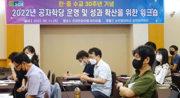 [충청뉴스 박동혁 기자] 순천향대학교 공자아카데미는 11일 아산시 온양관광호텔 아이비홀에서 한·중 수교 30주년을 맞아 ‘2022년 공자아카데미 부설 공자학당 운영 성과 확산 워크숍’을 개최했다.