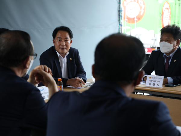 [충청뉴스 최형순 기자] 세종시의회 상병헌 의장은 10일 세종특별자치시 사회복지협의회(회장 김부유, 이하 ‘협의회’)를 방문해 김부유 회장을 비롯한 주요 임원진이 참석한 가운데 협의회 운영실태를 확인하고 현안 사항 등을 청취했다.