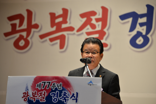 최민호 세종특별자치시장은 경축사를 “우리민족의 위대한 저력을 한데 모아 도약의 발판을 마련하고, 창조와 도전을 기회삼아 미래전략수도를 건설해 누구나 꿈꾸는 풍요로운 삶과 품격이 넘치는 세종을 세워 나가겠다”고 밝혔다.