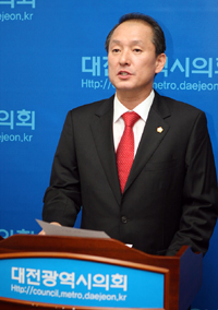 박종선 대전시의회 부의장이 민주당의 6개월 당원 자격정지 중징계에 반발하며 6일 대전시의회에서 기자회견을 갖고 탈당을 선언했다.