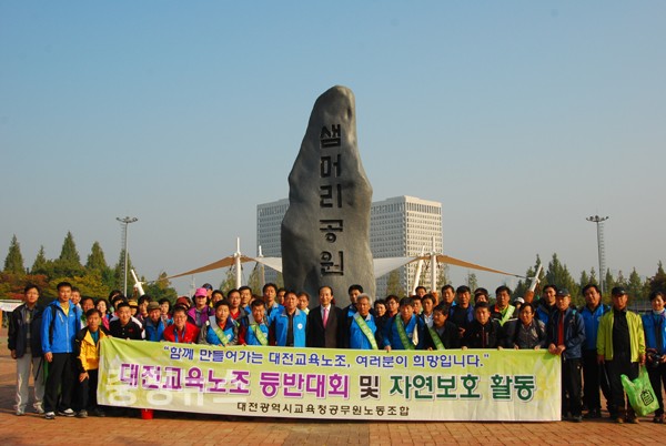 이번 행사는 교육노조 소속 1,2,3지부에서 합동으로 주최했으며, 본격적인 산행에 앞서 참석자들은 약 1시간에 걸쳐 둔산동 소재 샘머리공원에서 쓰레기를 정리하는 등 자연보호 활동을 펼쳤다.