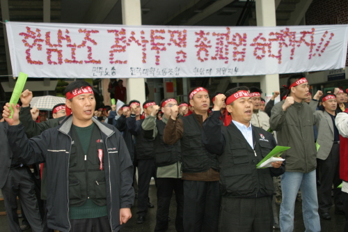 행위는 현 사태를 더욱더 악화시킨다는 것을 분명하게 깨닫기 바란다"고 강조한 후, 단체협약 쟁취와 노동조합 사수를 위한 출정식을 한남대학교 본관