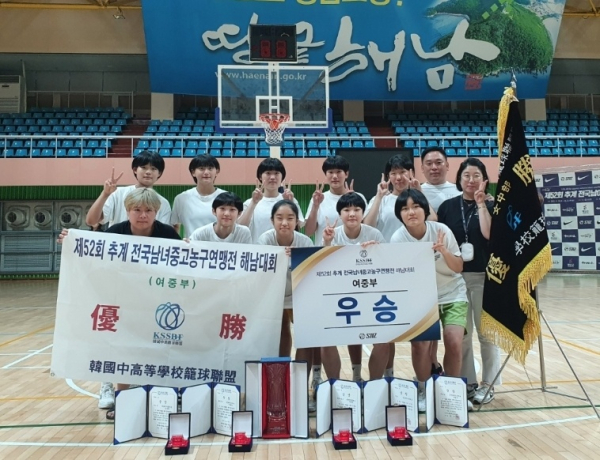 [충청뉴스 박동혁 기자] 충남 아산 온양여자중학교 농구부는 지난 24일 ‘제52회 추계 전국 남녀중고 농구연맹전 해남대회’ 여중부 결승전에서 승리하며 우승을 차지했다.
