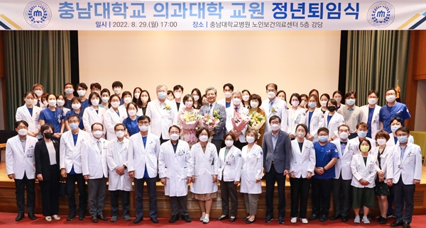퇴임식에는 8월 말로 퇴임하는 교수를 비롯해 가족, 의과대학 학장, 각 부학장 및 보직교수, 보직자, 교직원 등 참석해 정년을 맞이하는 분들에게 그간 노고에 감사를 전하고 영예로운 퇴임을 축하했다.