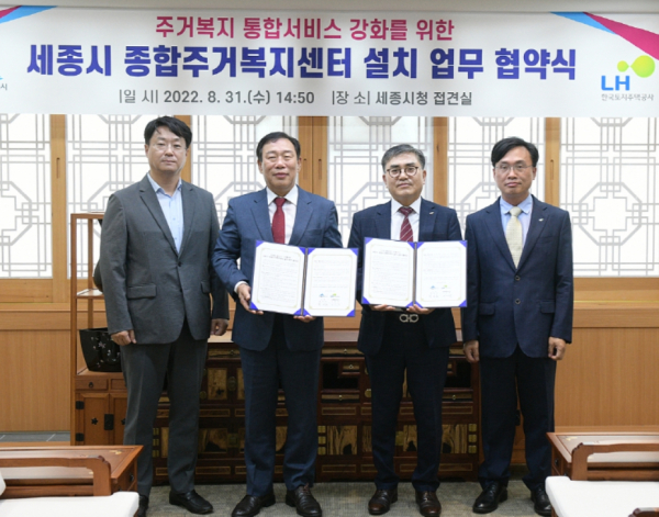 [충청뉴스 최형순 기자] 세종시는 LH세종특별본부와 손을 잡고 ‘세종시 종합주거복지센터’를 설치, 가구별 복합적인 주거문제를 원스톱으로 해결하는 주거복지 통합서비스 제공에 나선다.