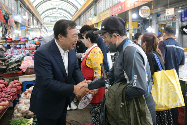 이날 최민호 시장은 판매되는 제수용품, 과일 등을 확인하고, 물가상승에 따른 경기침체 등으로 어려움을 겪고 있는 상인들의 애로사항을 직접 경청하고 시 차원의 지원 방안을 논의했다.