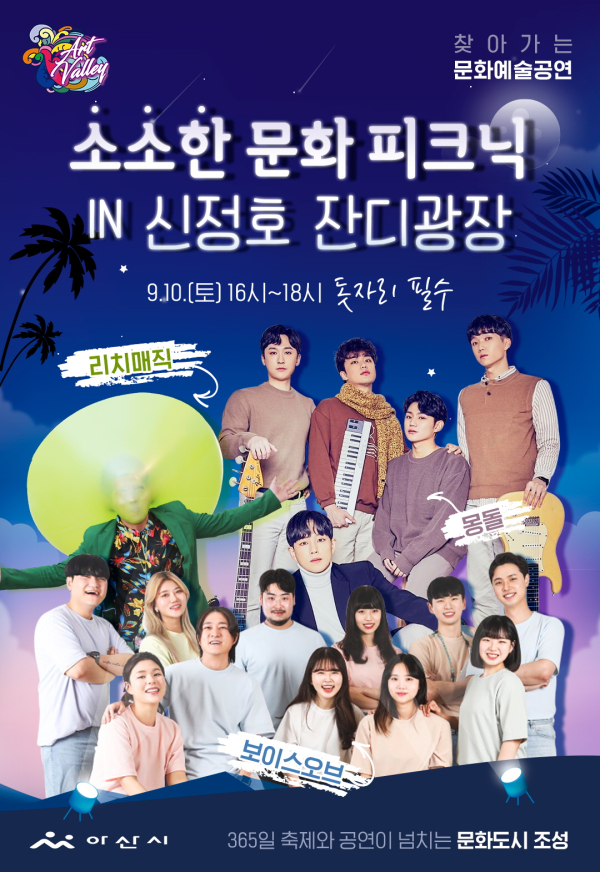[충청뉴스 박동혁 기자] 충남 아산시는 오는 10일 신정호 잔디광장에서 ‘소소한 문화피크닉 IN 신정호 잔디광장’을 개최한다.
