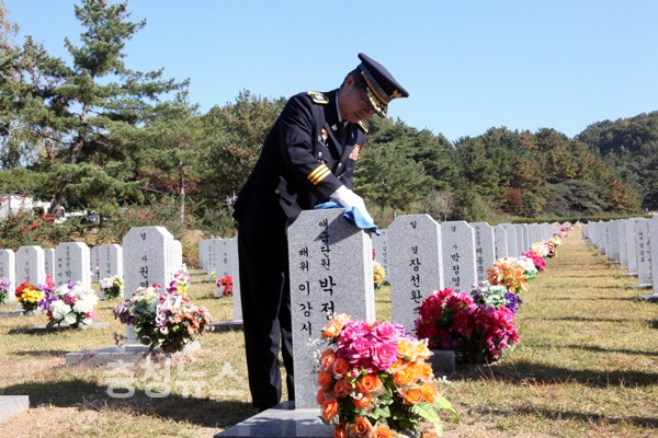 대전지방경찰청(청장 김학배)은 제66회 경찰의 날과 병행해 18일 국립대전현충원을 방문해 참배 및 묘비 닦기 봉사활동을 펼쳤다.