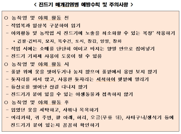 면서 세종시가 진드기 매개감염병 예방수칙을 당부하고 나섰다.