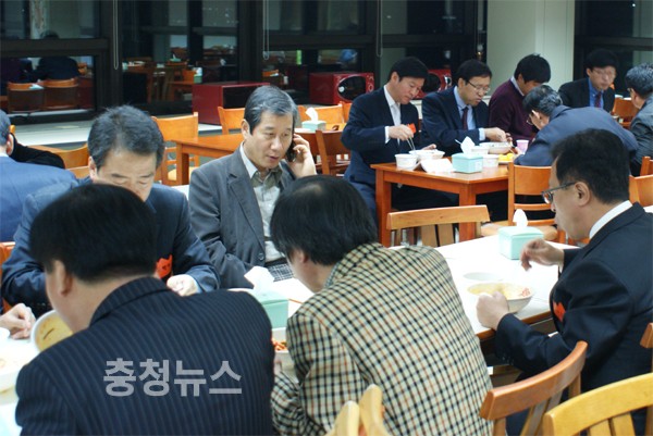 ▲ 식사를 거른 참석자들을 위해 따로 식사를 준비했다. 이창기 원장과 이서령 위원장이 눈에 띈다.