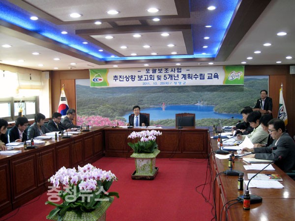 청양군(군수 이석화)이 지난 20일 조경연 부군수 주재로 ‘2011년 포괄보조사업 3분기 추진상황 보고회 및 5개년 계획 보완교육’을 실시했다.