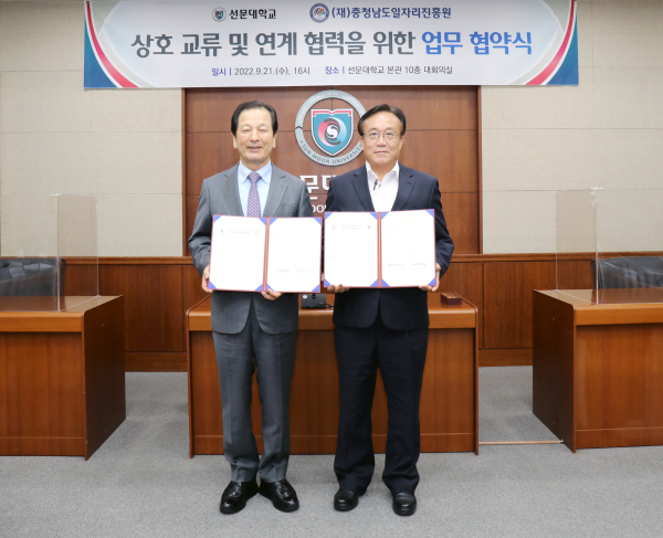 [충청뉴스 박동혁 기자] 선문대학교 21일 충청남도일자리진흥원과 지역 내 전문 인력 양성을 위한 업무협약을 체결했다.