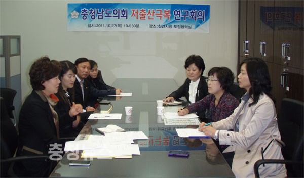 충남도의회 저출산 극복 연구모임(대표의원 김장옥)은 27일 천안시청 도정협력실에서 '보육시설 시간연장 정책 개선방안' 마련을 위한 간담회를 가졌다.