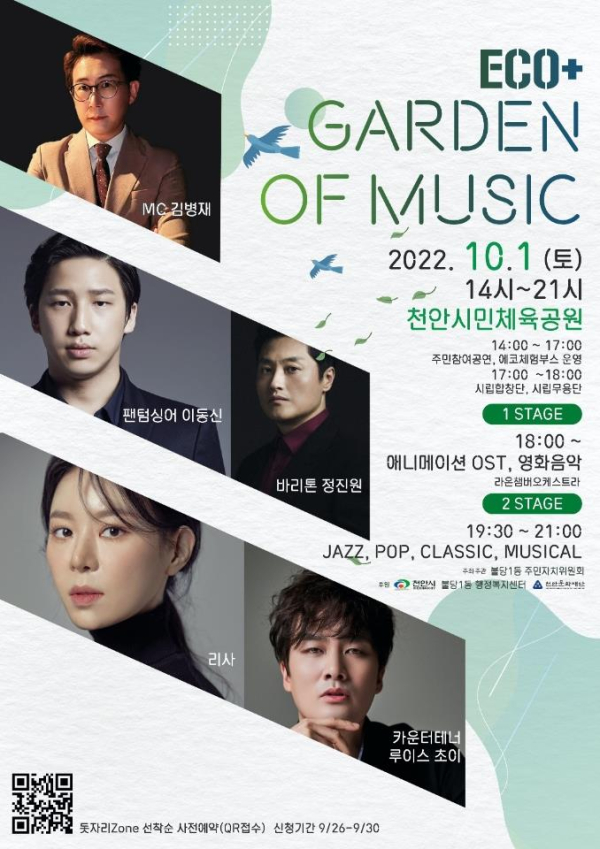[충청뉴스 박동혁 기자] 도심 속에서 자연과 음악으로 힐링하는 축제 ‘Eco+ 가든 오브 뮤직’이 내달 1일 천안시민체육공원에서 열린다.