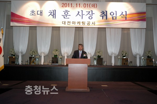대전마케팅공사 채훈 초대사장이 1일 엑스포컨벤션센터에서 취임식을 갖고, 3년 동안 대전마케팅공사 사장으로서의 공식 업무에 돌입했다.